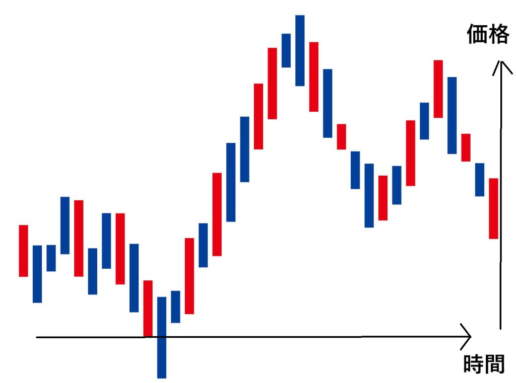 チャートは、ローソク足を基本として何本も連なり上下を繰り返しながらジグザクに移動しています。